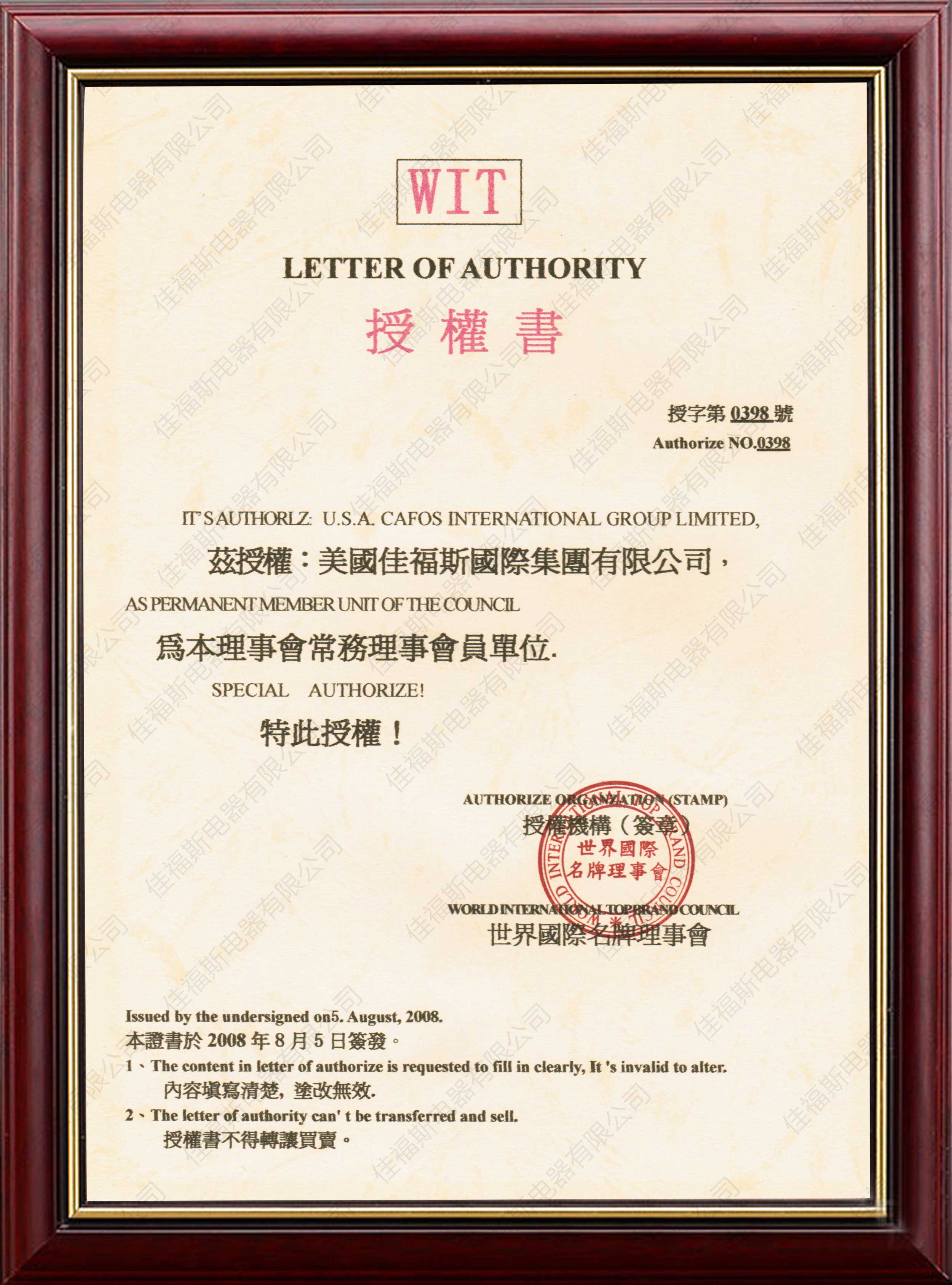 質(zhì)量認證證書
